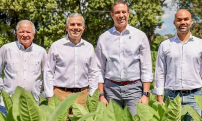 De izquierda a derecha Isidro Tavárez, director agrícola del INTABACO; Iván Hernández Guzmán , director del INTABACO; Frank Rodríguez, presidente y canciller de UTESA; Luis Gómez,...