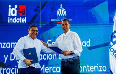 Alexis Cruz Rodríguez, viceministro de Economía, y Guido Gómez Mazara, presidente del Indotel, durante la firma del acuerdo. (FUENTE EXTERNA) Santo Domingo, RD El Instituto Dominicano...