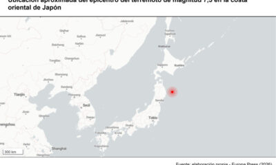 Ubicación aproximada del epicentro del terremoto de magnitud 7,5 en la costa oriental de Japón. EUROPA PRESS En un primer momento, ha recalcado que la alerta de...