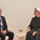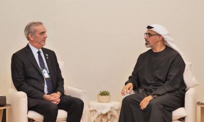 A la izquierda el presidente Luis Abinader junto con el príncipe heredero de Abu Dabi, Khaled bin Mohamed bin Zayed en Dubái este 6 de febrero...