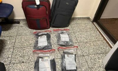 Paquetes de presunta cocaína hallados en las maletas de la mujer detenida en el Aeropuerto Internacional de Las Américas durante un operativo de interdicción. (FOTOGRAFÍA SUMINISTRADA...