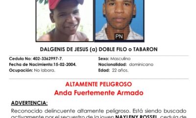 Santo Domingo.- La Policía Nacional informó el apresamiento de Dalgeni de Jesús, alias “Doble Filo” o “Tabarón”, quien era buscado por las autoridades por su presunta...