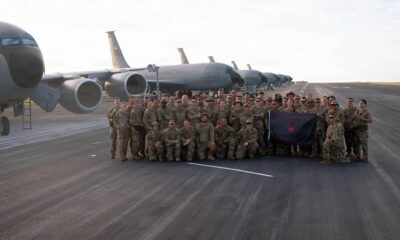 Los aviadores estadounidenses asignados al 921º Escuadrón de Respuesta a Contingencias posan para una foto de grupo en un aeródromo en la Base Aérea de Las...