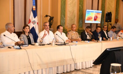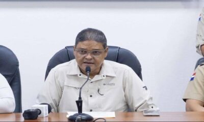 Juan Manuel Méndez, director del COE (al centro), exhorta a la población a actuar con prudencia frente a la tormenta tropical Melissa. (Externa) Santo Domingo, RD...