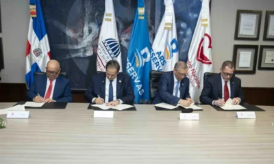 Pedro José Sing Ureña, director del Hemocentro; Víctor Elías Atallah, ministro de Salud Pública y Asistencia Social; Leonardo Aguilera Batista, presidente ejecutivo de Banreservas; y José...