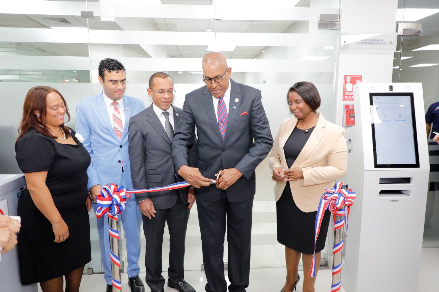 Félix Antonio Santana García cortó la cinta con la que también puso en funcionamiento el primer Kiosco Digital para la autogestión de documentos, una solución innovadora para los usuarios que acudan de manera presencial puedan gestionar el servicio de correspondencia electrónica de forma autónoma y, a la vez, familiarizarse con el proceso para que, posteriormente, lo puedan hacer vía web, desde sus comunidades, sin costo alguno.