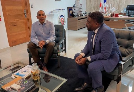 Michael Miranda, comandante especial de la División Caribe de la Agencia Antidrogas de los Estados Unidos (a la derecha), reunido con el presidente de la DNCD, vicealmirante José Manuel Cabrera Ulloa