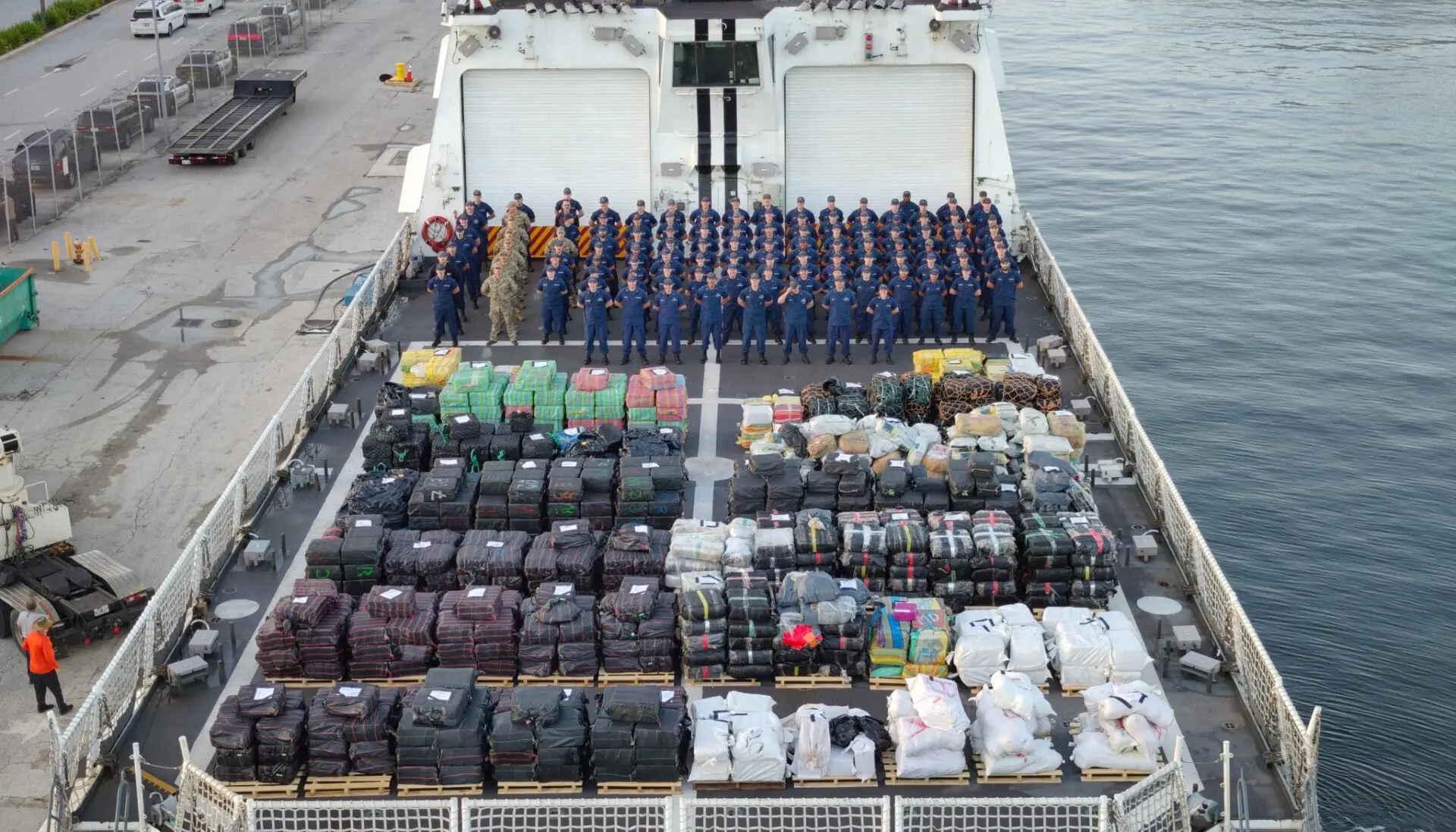 La Guardia Costera de Estados Unidos anunció en su portal oficial que logró una incautación sin precedentes al descargar 76,140 libras de narcóticos —61,740 de cocaína y 14,400 de marihuana— en Port Everglades, Florida.