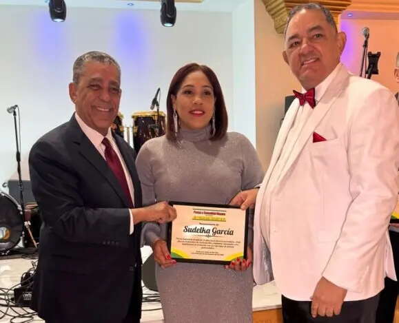 El congresista Adriano Espaillat y Ramon Mercedes, presidente de Precohis, entregan el reconocimiento a Sudelka García. Nueva York. – La periodista dominicana Sudelka García fue reconocida por la organización Prensa & Comunidad Hispana PreCoHis por su destacada trayectoria de más de 15 años en el ejercicio periodístico, diez de ellos en el periódico El Nacional de la República Dominicana, así como por su valioso aporte manteniendo informados a los dominicanos en el exterior a través de sus reportajes de turismo gastronómico. El reconocimiento fue otorgado en la ciudad de Nueva York el día 5 de diciembre del año 2025, como parte de una actividad dedicada a exaltar el trabajo de comunicadores que han contribuido de manera significativa a la difusión cultural, social y gastronómica de la comunidad hispana, especialmente de la diáspora dominicana.