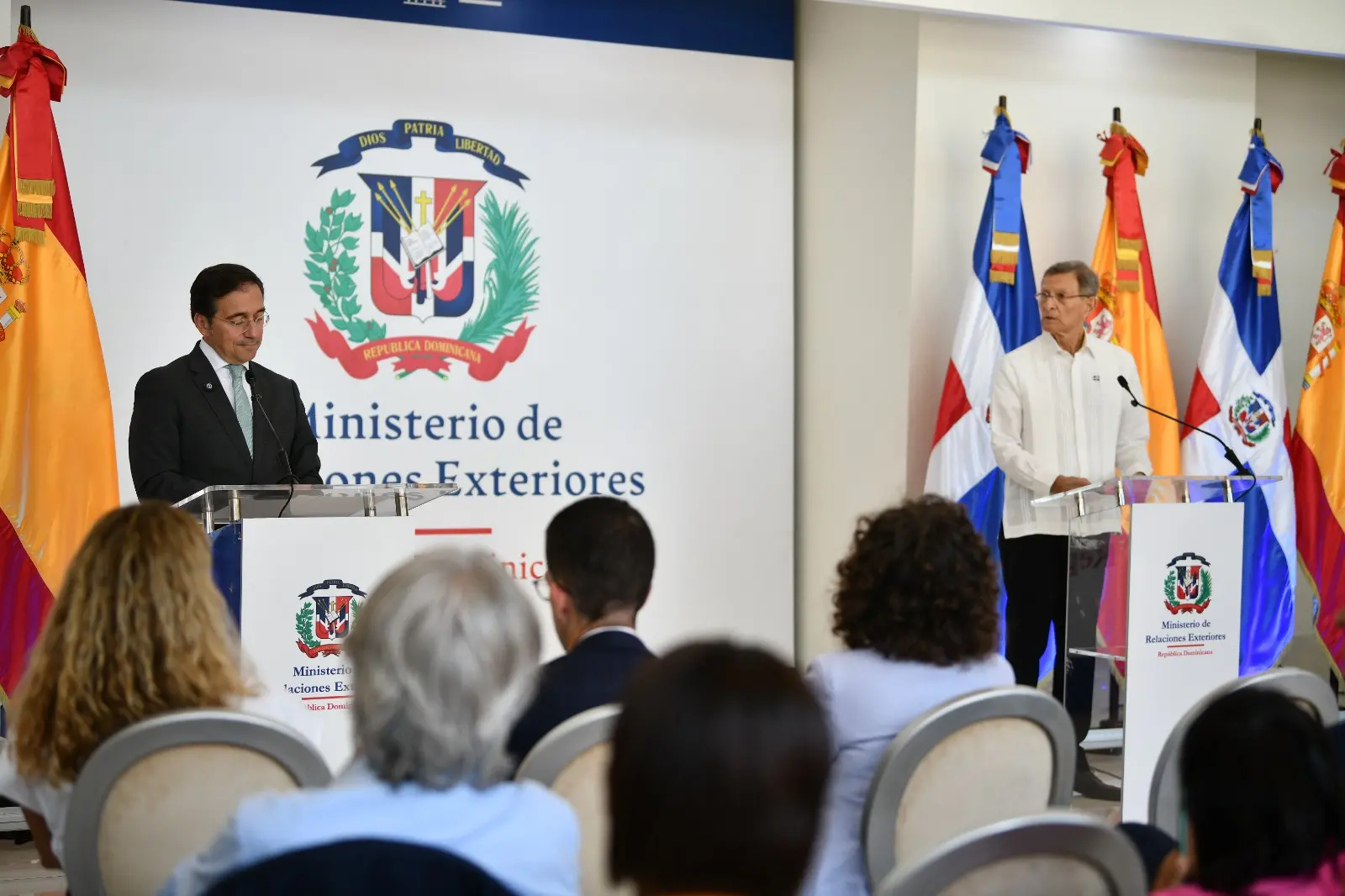 Durante su intervención ante los medios de comunicación, José Manuel Albares resaltó la relación bilateral entre ambas naciones al reafirmar que España continuará apoyando el desarrollo y los avances de República Dominicana.