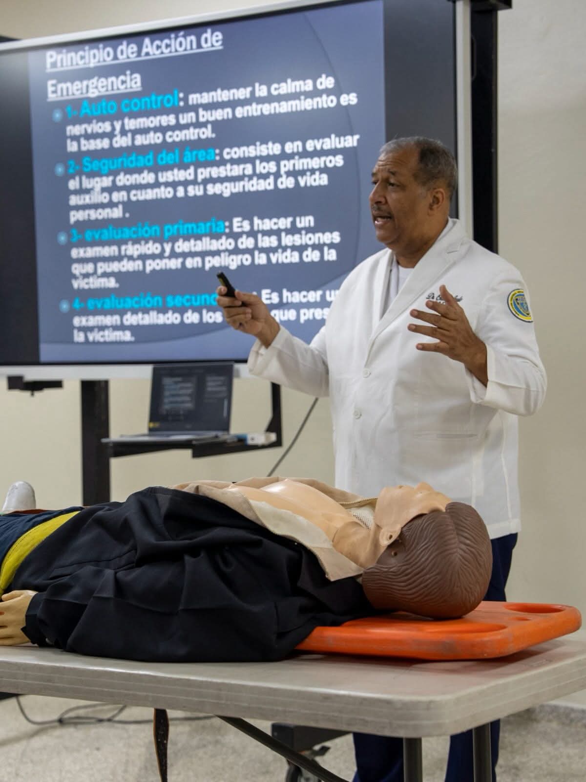 La jornada formativa fue impartida por el coronel médico Freddy Ortiz Avaló, encargado de la Unidad de Atención Primaria (UNAP) del instituto, quien ofreció instrucción teórica y práctica sobre técnicas esenciales como la reanimación cardiopulmonar (RCP), el manejo de heridas y la atención inicial en situaciones críticas.