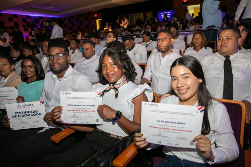 Dijo que las áreas con mayor demanda formativa incluyen ciberseguridad, ciencia de datos, inteligencia artificial, desarrollo web full stack y marketing digital, campos que reflejan las tendencias globales y alinean al país con las competencias más requeridas en la economía digital. “Hoy no solo graduamos participantes, estamos consolidando una generación preparada para competir en la economía digital y aportar al crecimiento del país con talento y conocimiento, expresó.